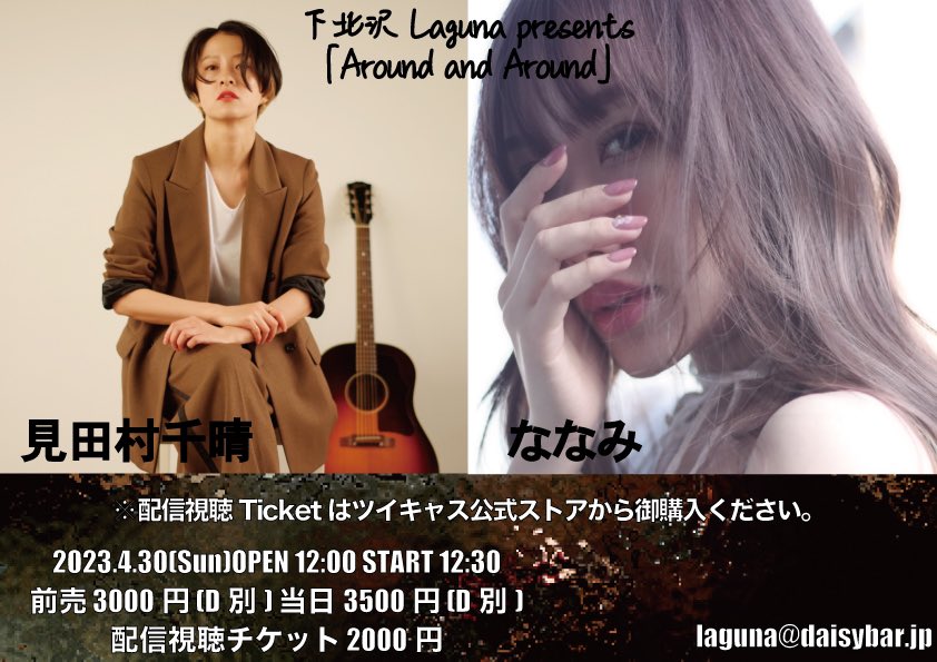 見田村千晴の寄合がTwitterを更新しました 2年以上前 Twitterへ 【今週末】 ◆4/30(日) 下北沢 Laguna 見田村千晴 ななみ 開場12:00/開演12:30 入場前売3000円(D別) 配信視聴2000円 🚶♀️入場チケット👇 https://t.co/q8ZsxSU1TV 📺配信チケット👇 https://t.co/pt1fAnRhev ななみちゃんとお昼のツーマン! めちゃくちゃ楽しみ。ぜひ。 https://t.co/Go0QThd2jC 1 0 0