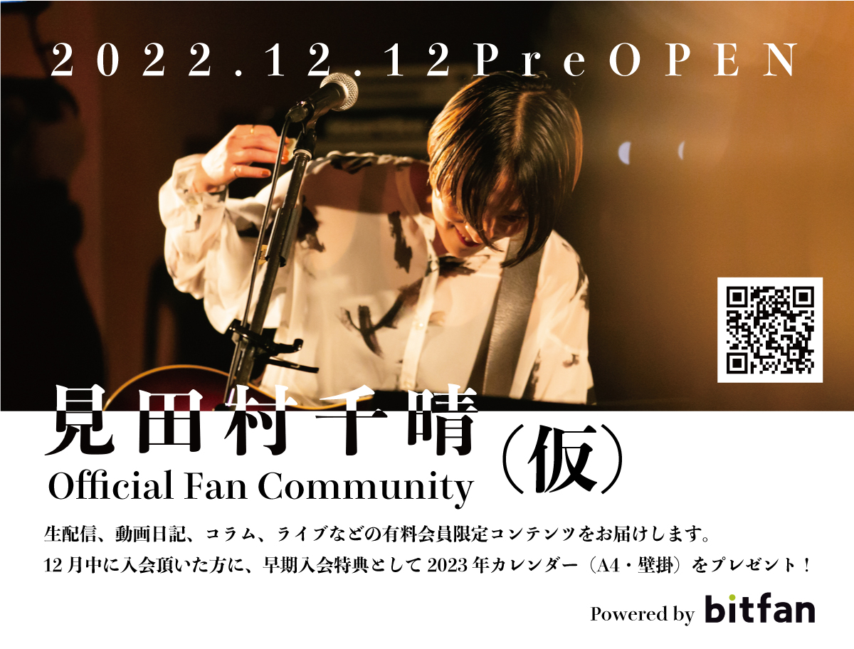 見田村千晴Official Fan Community(仮)プレオープンしました!12月はプレオープンということで、有料会員限定コンテンツの一部を無料公開しようかなと思っています。