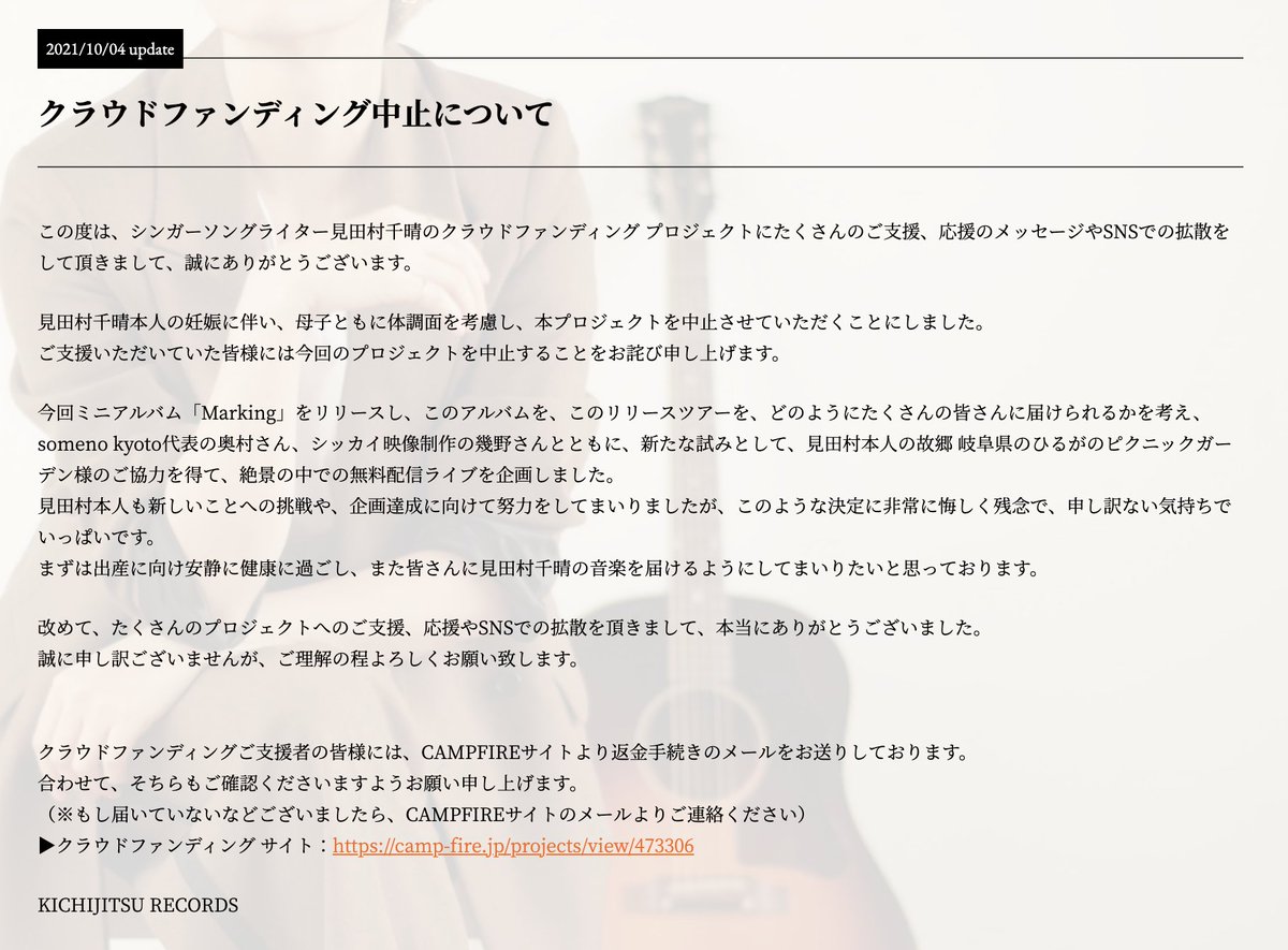 クラファンを応援して下さった方、10/16の野外配信ライブを楽しみにして下さっていた方、そして私の挑戦に関わって下さった方に、本当に申し訳ない気持ちです。やりたかった。