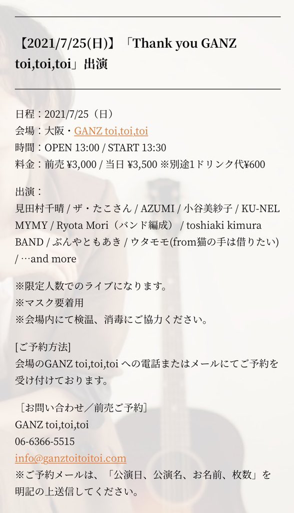 前売¥4,000/当日¥4,500 ※別途1ドリンク代