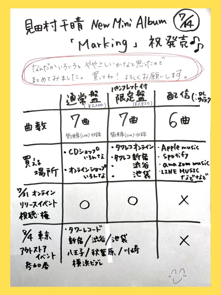 本日7月14日、見田村千晴『Marking』リリースになりました。
